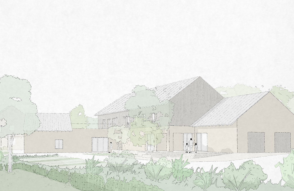 1 bâtiment administratif comprenant des bureaux, des chambres individuelles pour les éducateurs et des locaux techniques avec 1 logement T3 accolé voué à accueillir 2 jeunes adultes