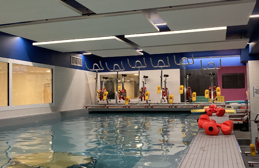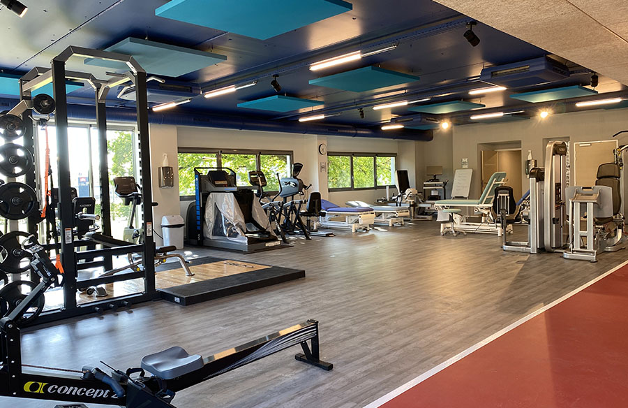 Un pôle Kinésithérapie : 1 plateau technique de kiné avec équipements, 1 plateau fitness, 1 piste de course, 1 espace bassin-balnéothérapie, 1 cryothérapie, 1 espace accueil et des vestiaires.