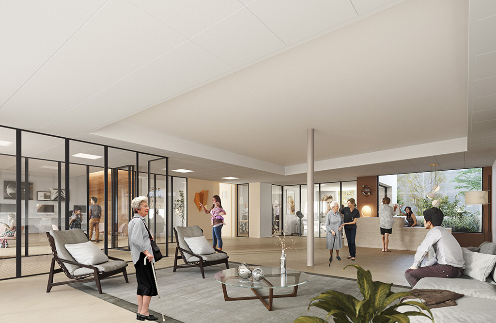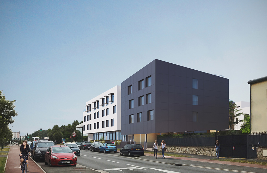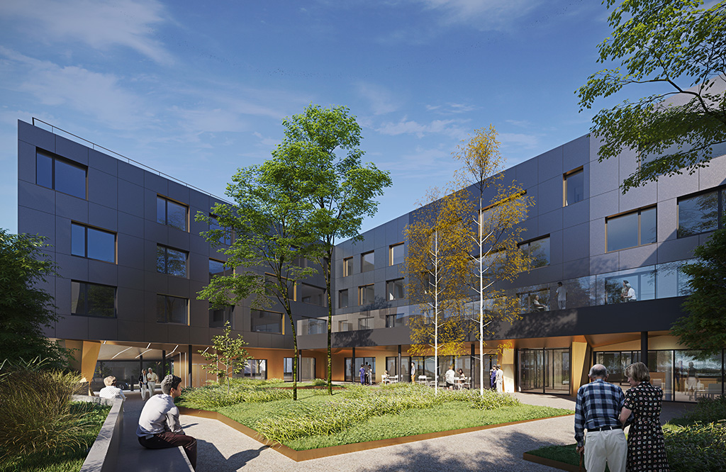 Architecture sur site contraint avec avoisinants en zone urbaine, création d’un jardin thérapeutique, isolation par l’extérieure.